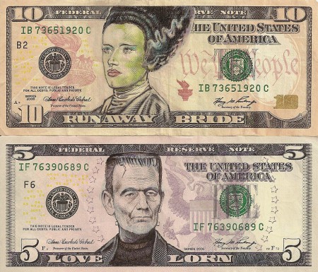 I handle so much money, now that I'm a bank teller, that after awhile it all becomes the same. We're taught to count bills by the faces because they're harder to fake if you make a forged bill. So when I found James Charles I was highly intrigued. I would LOVE to find something as creative as this while counting down a deposit. I see altered bills, and we're not allowed to hand them out to the public, but most of them just say something like "Happy Birthday!" or a one dollar bill made to look like it says a dirty word. More people need to see these things.